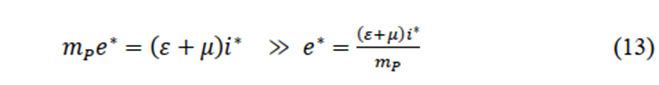 A couple of equilibrium points are determined. The first equilibrium point, PC1, is determined when i=0, which corresponds to the case of a disease-free equilibrium, known as the disease-free point. By imposing this condition on equation we get that e=0 too. Using these values in equation (9), we obtain that
